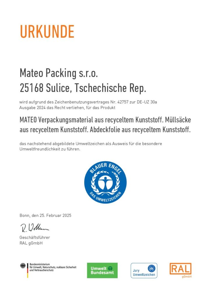 Zertifikat Blauer Engel​